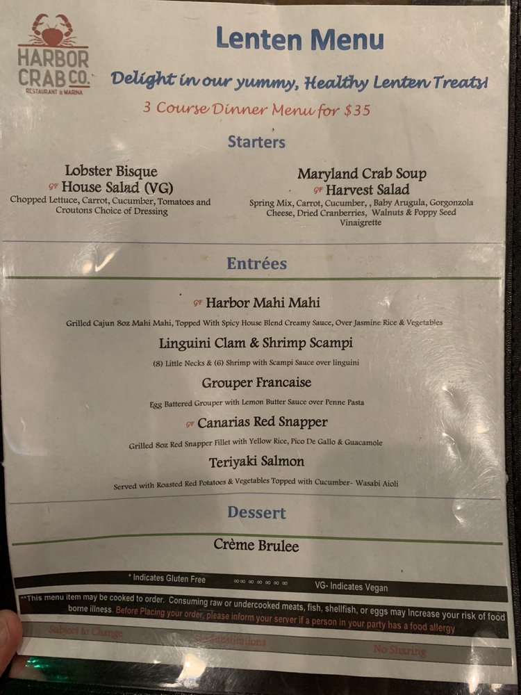 Harbor Crab Menu